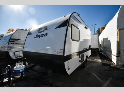 The Jay Feather Air SL travel trailer by Jayco is affordable, convenient, and lightweight for an easier tow! A Magnum Truss roof system and fully integrated A-frame provide a strong foundation to the trailer, plus there are galvanized-steel, impact resistant wheel wells for added protection. Some of the exterior conveniences you'll find include a front tongue jack and stabilizer jacks, roof mount solar prep, an exterior porch light, and G20 dark tinted privacy windows. Head inside to enjoy solid hardwood cabinet doors, residential-style kitchen countertops, a marine-grade toilet with foot flush, and vinyl flooring throughout that will be easy to keep clean. This super lite travel trailer is the perfect choice for rookie RVers and seasoned campers alike!