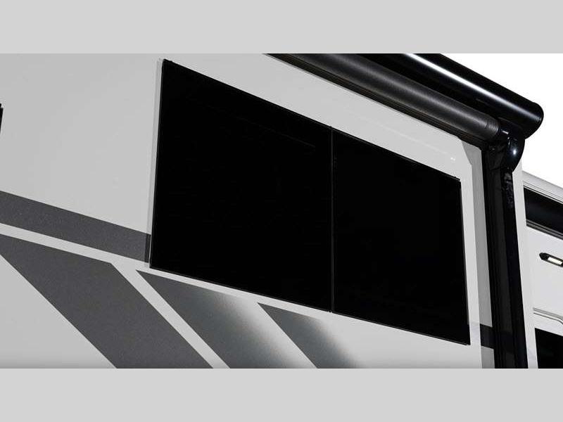 The JRide Plus will provide precise handling and stability as you travel across the state or country, and the Stronghold VBL lamination is the lightest, yet strongest construction in the industry so you can enjoy your coach for all your adventures. There are solid surface kitchen countertops inside, along with decorative kitchen backsplash, hardwood cabinet doors, and large wardrobes to easily store your belongings.