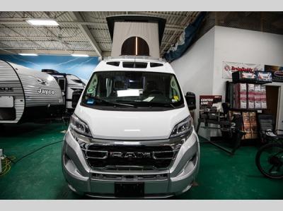 Sleeps 4 Length 20 ft 9 in Ext Width 6 ft 11 in Ext Height 9 ft 7 in Int Height 6 ft 2 in Hitch Weight 3500 lbs GVWR 9350 lbs Cargo Capacity 1250 lbs Fresh Water Capacity 33 gals Grey Water Capacity 14 gals Black Water Capacity 8.5 gals Tire Size LT225/75R16E Black Wall Furnace BTU 11500 btu Generator Underhood Fuel Type Gasoline Engine 3.6L V6 24 Valve Chassis Ram ProMaster 3500 Extended Van Horsepower 280 hp Fuel Capacity 24 gals Wheelbase 159 in Available Beds Two Twin, King Conversion Refrigerator Type 12V Refrigerator Size 5.3 cu ft Cooktop Burners 2 Number of Awnings 1 LP Tank Capacity 5.9 gals Water Heater Type Truma Aqua Go On Demand AC BTU 13500 btu TV Info Coach 24" Smart TV Awning Info 13' Power Gross Combined Weight 10600 lbs Shower Type Wet/Bath Shower Electrical Service 30 amp Solar Wattage 200 watts