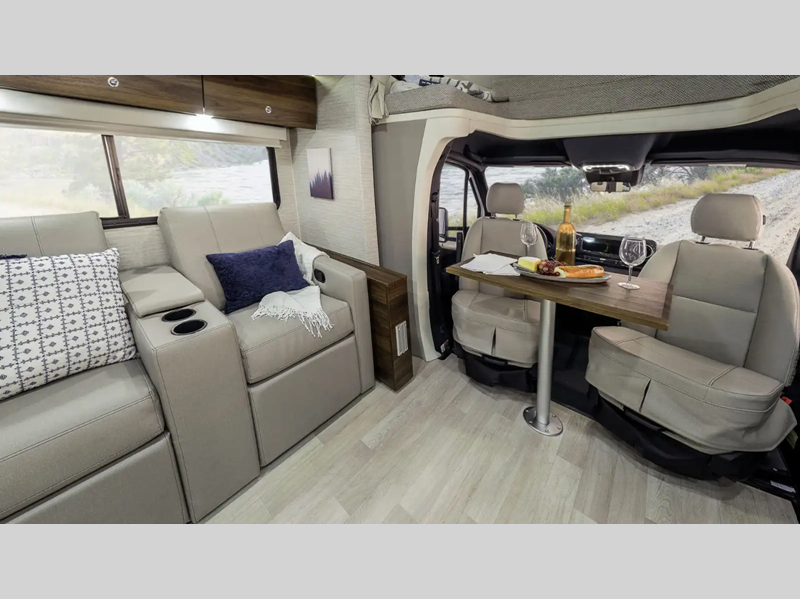 Sleeps 4 Slides 1 Length 25 ft 8 in Ext Width 7 ft 7 in Ext Height 10 ft 7 in Int Height 6 ft 8 in Interior Color Hygge Haus ll, Mod Allure ll Exterior Color Carbonite Gray, Misty Lake, Ocean Coast Hitch Weight 5000 lbs GVWR 11030 lbs Fresh Water Capacity 35 gals Grey Water Capacity 46 gals Black Water Capacity 47 gals Furnace BTU 25000 btu Fuel Type Diesel Engine 2.0L High Output Turbo Diesel 4-Cylinder Chassis Mercedes-Benz RWD Sprinter Fuel Capacity 24.5 gals Wheelbase 170 in Number Of Bunks 1 Available Beds Twin Beds with King Conversion Refrigerator Type 12V Two Door Compressor Driven Refrigerator Size 10 cu ft Convection Cooking Yes Cooktop Burners 2 Shower Size 25" x 30" Number of Awnings 1 Axle Weight Front 4410 lbs Axle Weight Rear 7720 lbs LP Tank Capacity 50.76 Water Heater Type Truma AquaGo Comfort Plus Tankless AC BTU 15000 btu Basement Storage 80.9 cu. ft. TV Info 32" LED HDTV, BR 24" LED HDTV Awning Info 16' Power with LED Lights & Bluetooth Control Gross Combined Weight 15250 lbs Shower Type Standard Electrical Service 30 amp Solar Wattage 240 watts Similar Floorplans